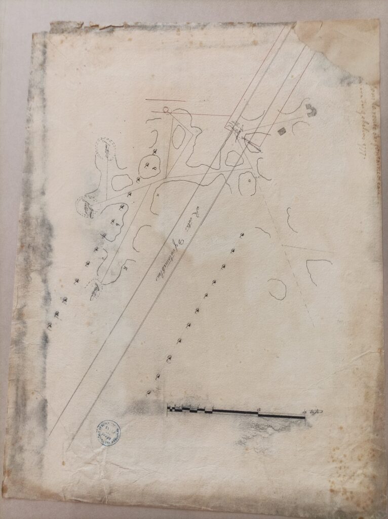 J’ai fais ma visite hier dans le dessous de la plaine de hors de la barrière de St Jacques. Nous avons parcourus le plus qu’il nous a été possible l’aqueduc d’Arcueil, nous l’avons trouvé fouillé dans bien des endroits. Nous avons été sous le terrain du Sieur Chauveaux, marchand tapissier dont j’ai rendu un rapport pour qu’il nous donne toutes les communications par ses puits à ses frais. Il l’a fait et nous a même fait faire le déblais pour nous étendre dans la plaine.